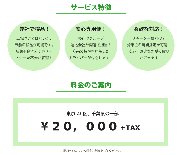 2. 安心専用便! 弊社のグループ運送会社が配送を担当!商品の特性を理解したドライバーが対応します!